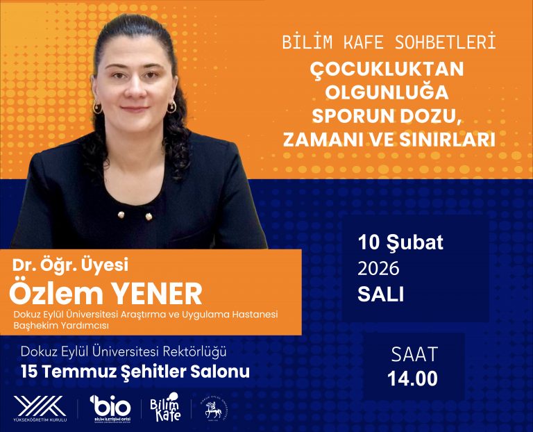 Dokuz Eylül Üniversitesi (DEÜ), Yükseköğretim Kurulu Bilim İletişimi Ofisi iş birliğiyle sürdürdüğü Bilim Kafe Sohbetlerinin beşinci buluşmasında, sporun yaşamın farklı evrelerindeki rolünü ele alıyor.