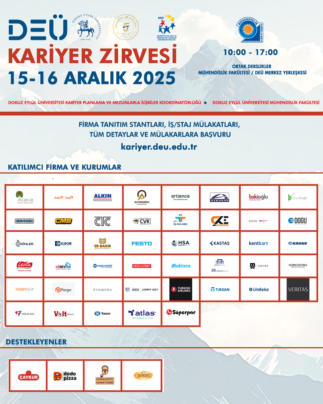 Zirve hakkında detaylı için https://kariyer.deu.edu.tr/tr/deu-kariyer-zirvesi-2025/ adresini ziyaret edebilirsiniz.