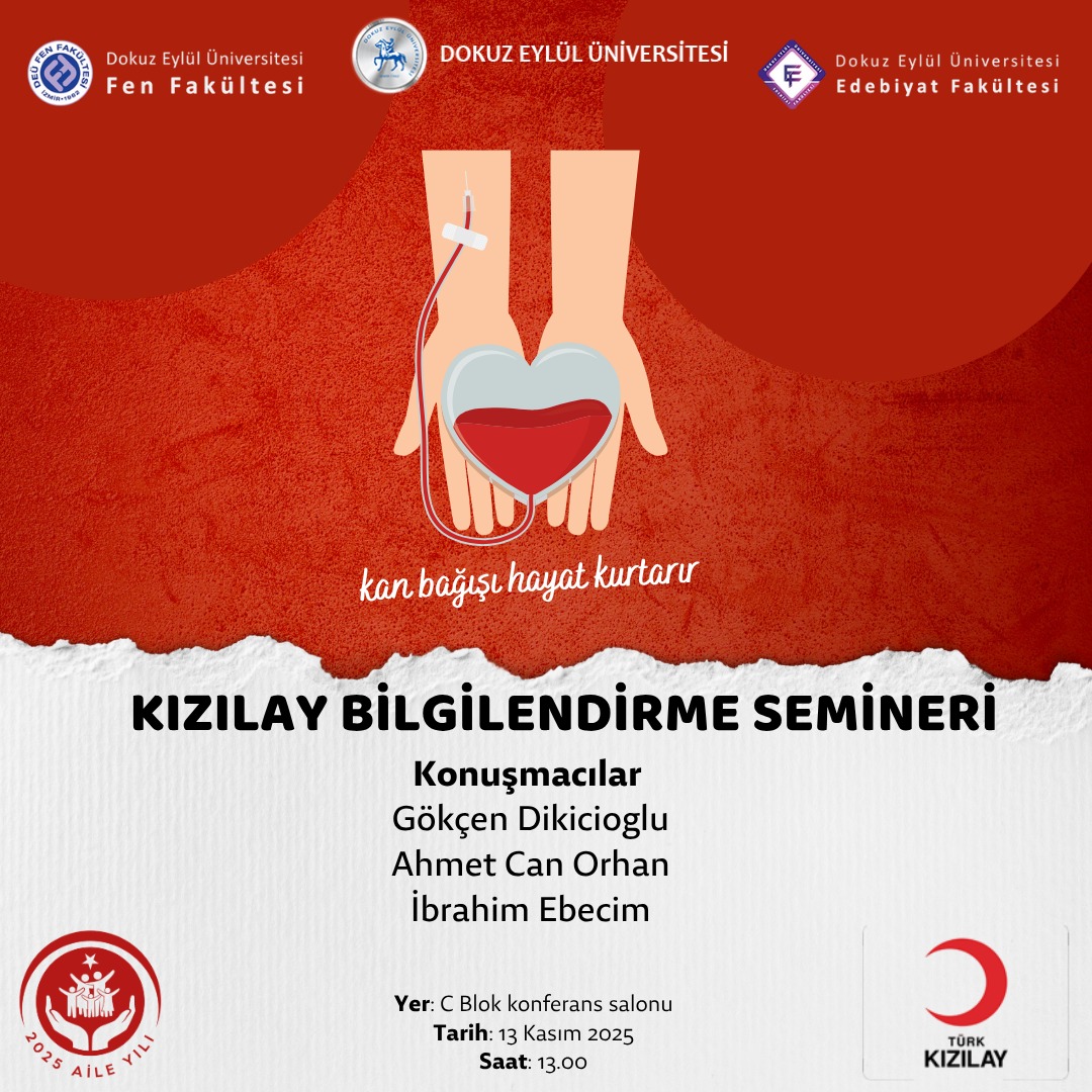 Fakültemiz, 13 Kasım saat 13.00 de Fen Fakültesi ve Edebiyat Fakültesi Sosyal Sorumluluk Komisyonları ve Kızılay iş birliğiyle anlamlı bir etkinliğe ev sahipliği yapacaktır.
