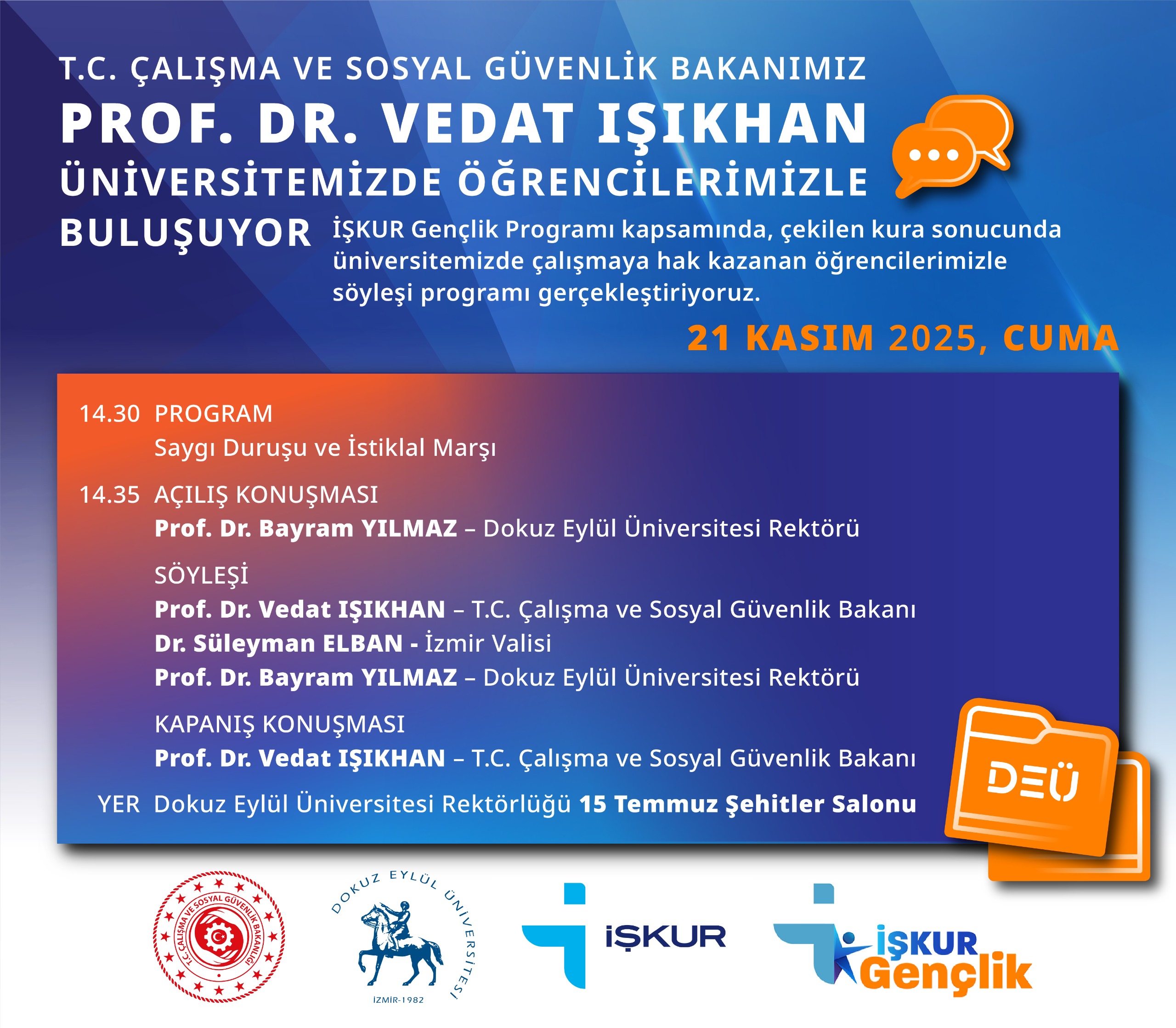 İŞKUR Gençlik Programı kapsamında, çekilen kura sonucunda üniversitemizde çalışmaya hak kazanan öğrencilerimizle gerçekleştirilecek söyleşi programı: